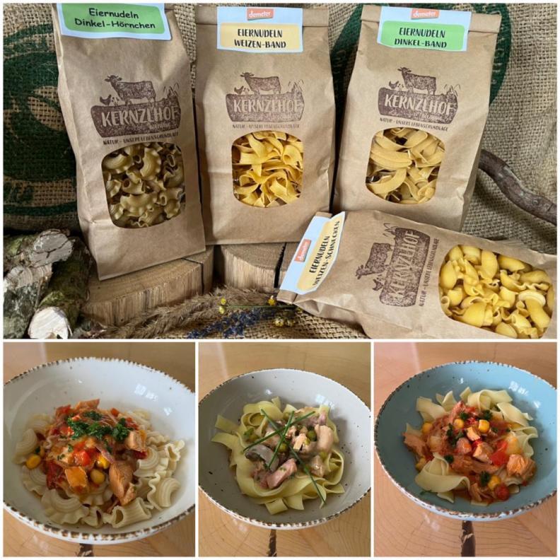 Zu den Gockel- und Hühner-Produkten passen übrigens perfekt unsere Eiernudeln.
